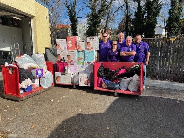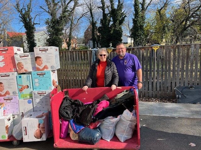 The Winchester Elks 867 did a diaper and coat drive in the lodge social quarters for the month of November and today board members delivered over 100 coats, 25 cases of diapers and $500 worth of non perishable food items to CCAP - Executive Director Andrea Cousens accepted the items - Elks Care, Elks Share!