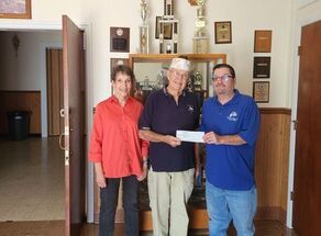 Pictured left to right are Committee member Cindy Wright, VFW Post 1033 member Bill Atherholt, and Exalted Ruler Chris Hutchison.