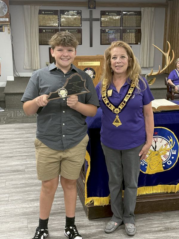 Winchester presented awards and checks to two of our 3 Americanism winner. Pictured are Joshua Thomas 2nd place winner in State with Plaque and $100.00 and Jordyn Jackson 3rd place winner received $75.00.